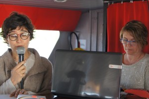 C’est à ce titre que nous avons été invitées pour une petite excursion en bateau au départ de Bordeaux vers l’Ile Nouvelle. A 9 h nous voilà embarquées, Babeth et moi, pour deux heures à bord de la Sardane, vers le bec d’Ambès. Pendant cette navigation, nous avons lu des extraits des ouvrages Le sentiment de l’estuaire de Chantal Detcherry et Le fleuve impassible de Pierre Siré, tous deux parus aux éditions du Festin. Nous avons ainsi voyagé, avec une petite cinquantaine de flâneurs lecteurs, vers ces îles relativement méconnues du public d’aujourd’hui, parsemées dans l’estuaire girondin, et nous avons fait une halte de quelques heures sur l’Île Nouvelle.